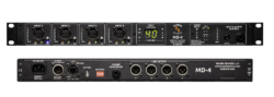 The MD-4 4×4 Analog-to-Dante Interface with Headphone Monitor is a simple, high-performance interface for connecting analog audio to Dante™ audio networks. Four high-gain microphone or level-level inputs are available for connection to a Dante audio network. Additionally, four Dante signals can be sent to its four balanced analog outputs. Inputs…